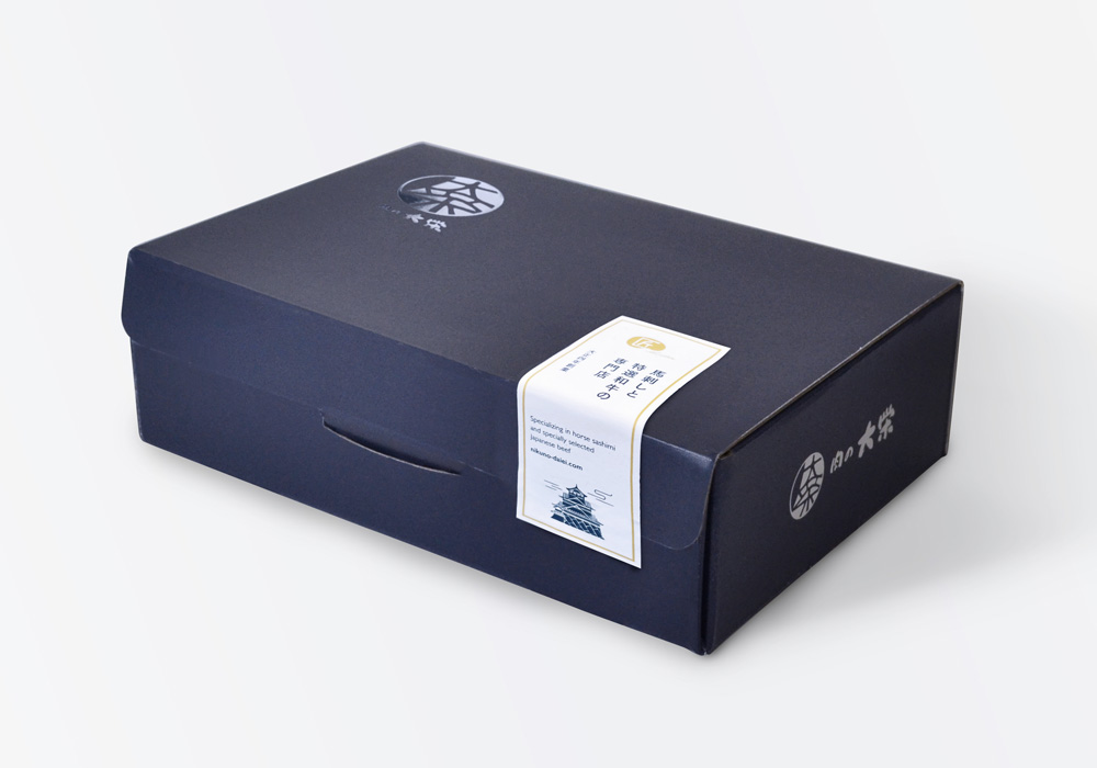 馬刺しは高価な高級食材であり、特に贈答品としての需要が高い商品です。しかし、既存の商品の箱やパッケージは、その価格や「職人の技術」といった品質に見合う高級感や期待感を抱かせるデザインになっていませんでした。お客様がギフトを受け取る際の満足度や、商品の価値を正しく訴求する上で、パッケージの刷新が急務となっていました。